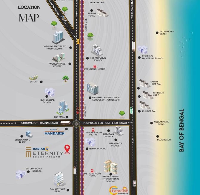 Radiance Eternity is a premium residential project by Radiance Realty Developers India Ltd, offering luxurious Apartments for comfortable and stylish living. Located on Thoraipakkam, Chennai, this project promises world-class amenities, modern facilities, and a convenient location, making it an ideal choice for homeowners and investors alike. This residential property features 215 units spread across 22 floors, with a total area of 2.21 acres designed thoughtfull.